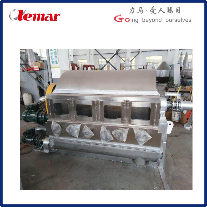 滾筒干燥機是一種內(nèi)加熱傳導(dǎo)型轉(zhuǎn)動干燥設(shè)備,濕物料在滾筒外壁上獲得以導(dǎo)熱方式傳遞的熱量,脫除水分,達到所要求的濕水含量.熱量由筒內(nèi)壁傳到筒外壁,再穿過料膜,其熱效率高,可連續(xù)操作,故廣泛應(yīng)用于液態(tài)物料或帶狀物料的干燥,對膏狀和粘稠物料更適用。 可分為二種形式:單筒、雙筒干燥機。另外也可按操作壓力分常壓和減壓兩種形式。