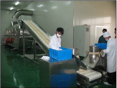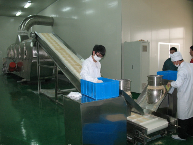 2、該生產(chǎn)線的核心部分:干燥系統(tǒng)。采用分段加熱的方式,預(yù)干燥段采用高壓低風(fēng)量風(fēng)機,使較濕的雞精顆粒能完全流化;干燥段采用低壓高風(fēng)量的風(fēng)機,單位時間內(nèi)帶走水份多,干燥均勻;冷卻段采用高風(fēng)量風(fēng)機,能迅速帶走熱量,降低產(chǎn)品溫度,既達到水分控制的要求,又方便后續(xù)包裝工藝。