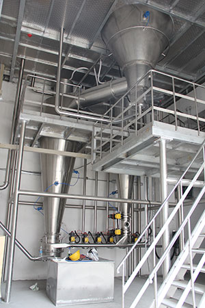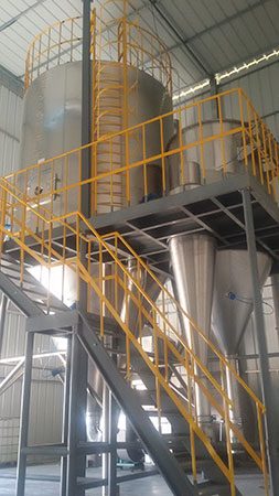 針對中藥干燥工藝,本公司經(jīng)過多年的生產(chǎn)實(shí)踐優(yōu)化改進(jìn)部分生產(chǎn)設(shè)備,自主研發(fā)了中藥配方顆粒專用干燥機(jī)。該設(shè)備是利用高速離心式霧化器使物料分散成霧狀,與熱空氣充分接觸完成瞬間干燥,形成粉或顆粒狀成品的干燥裝置。