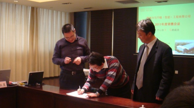 [2011年銷售任務(wù)認(rèn)領(lǐng)書簽字儀式,總經(jīng)理助理周華率先認(rèn)領(lǐng)銷售任務(wù)2000萬元并簽字]
