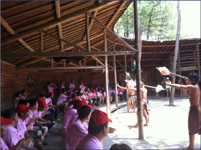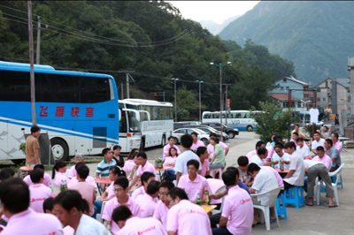 8月17日,旅游首日,上午三輛豪華大巴抵達(dá)安吉,游覽【竹博園】。在翠竹叢中,觀賞獨(dú)具匠心的造景藝術(shù),閱覽源遠(yuǎn)流長(zhǎng)的竹子傳說和典故。行走于竹峰棧道,著實(shí)體驗(yàn)了一番竹林騰飛的意境。農(nóng)家午餐略作休憩,全員抵達(dá)【黃浦江源漂流】景區(qū)。當(dāng)多艘竹筏在風(fēng)光迷人、碧水映天的畫卷中靈動(dòng),當(dāng)百余摯朋在嬉鬧樂呵、心神騰飛的境界里共鳴, 艷陽高照,歡歌四起,每個(gè)力馬人的笑容都如水天一色般迷人。漂流結(jié)束,入住農(nóng)家,舉辦“篝火晚會(huì)”,多項(xiàng)互動(dòng)節(jié)目寓教于樂,重申企業(yè)理念,抒發(fā)人文關(guān)懷。