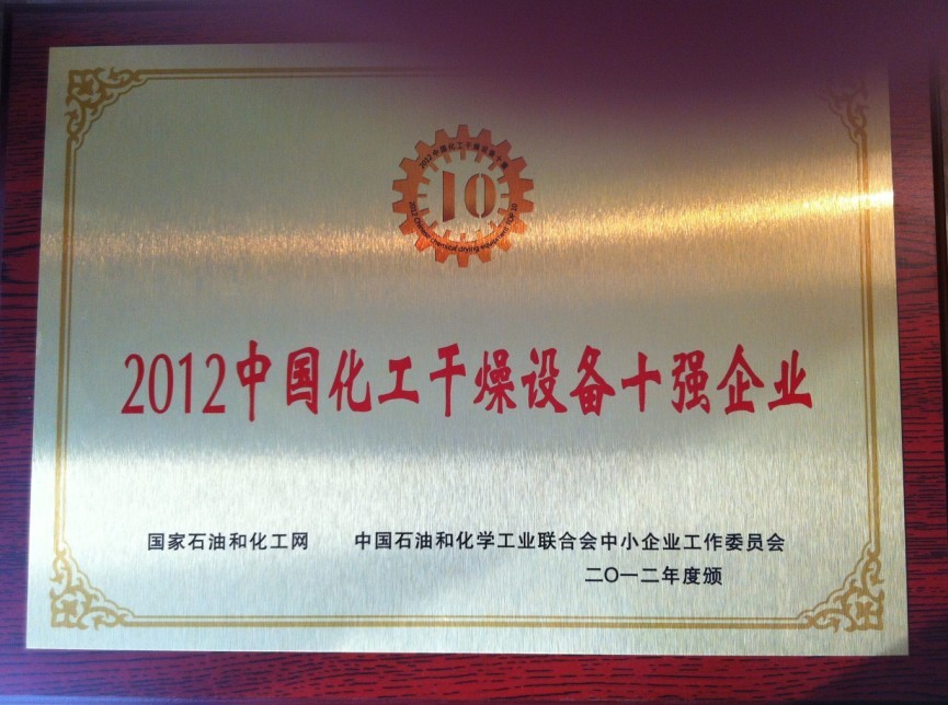 憑借2012優(yōu)異的銷售業(yè)績,卓越的企業(yè)管理水平,精湛的生產(chǎn)制造能力,周到的售后服務(wù)水準(zhǔn),常州力馬干燥工程有限公司獲評“2012中國化工干燥設(shè)備十強企業(yè)”。