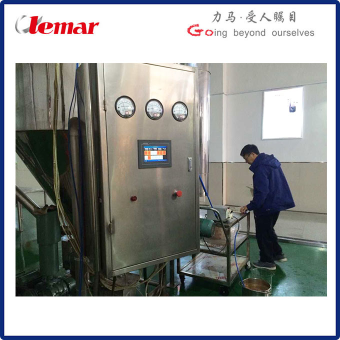 2015年5月16日湖南一制藥公司的張工和徐公一行到我公司進(jìn)行中藥制粉實(shí)驗(yàn),經(jīng)過(guò)40分鐘的等待,紅糖色的中藥液體很快變成了細(xì)膩的紅糖色粉末,色澤與中藥液體相同,味道也無(wú)差異,口感非常棒,得到了客戶的好評(píng)。