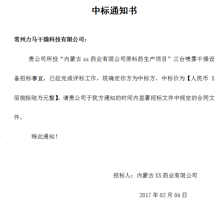 經過廣泛的調研和嚴格的測驗,內蒙古xx藥業(yè)有限公司,最終決定向常州力馬科技有限公司定購三臺原料藥噴霧干燥機,單筆金額高達百萬余元,貢獻力馬新春第一單,為力馬贏得了農歷雞年的頭彩。同時也展示了內蒙古xx藥業(yè)有限公司蓬勃的生機和迅猛的發(fā)展勢頭,真誠祝愿兩家公司合作愉快、雞年大吉。