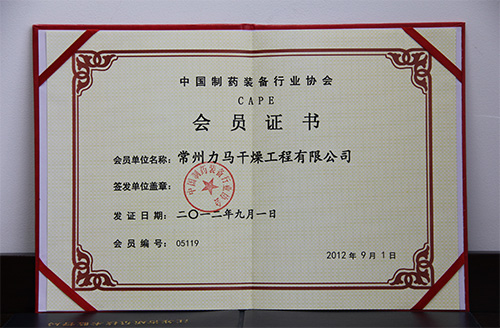 智能回轉(zhuǎn)真空 | 中國機械工程學(xué)會 | 中國制藥裝備行業(yè)協(xié)會-會員證書 |